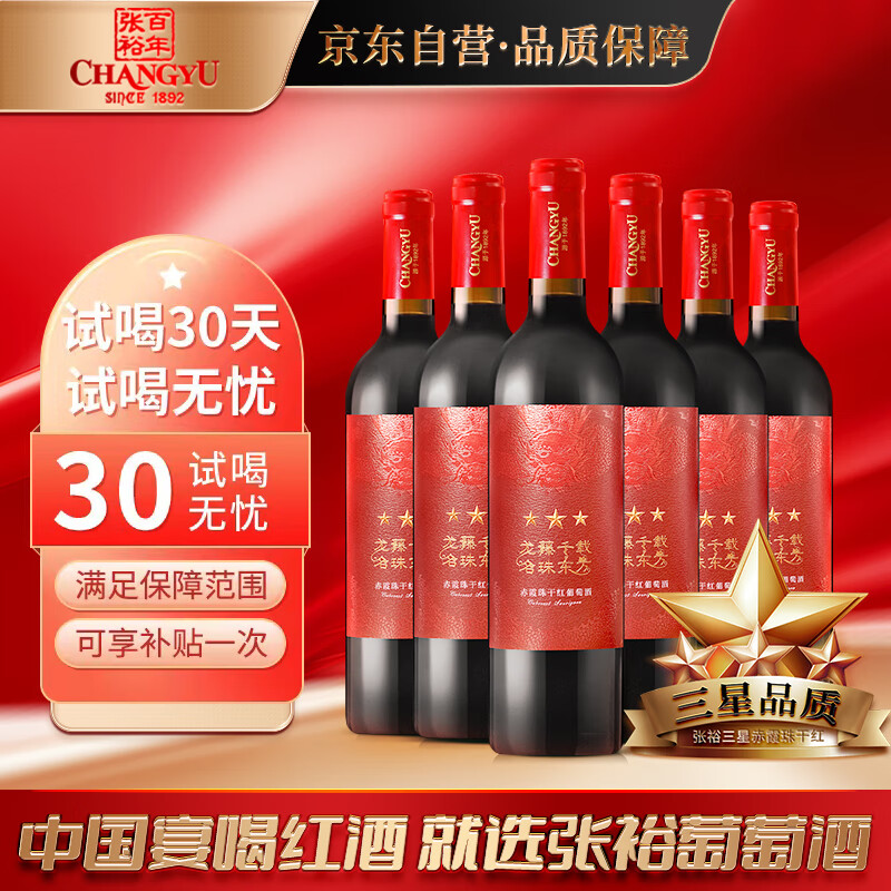 张裕 三星赤霞珠干红葡萄酒 750ml*6瓶 整箱装 国产红酒价格:308.00元!