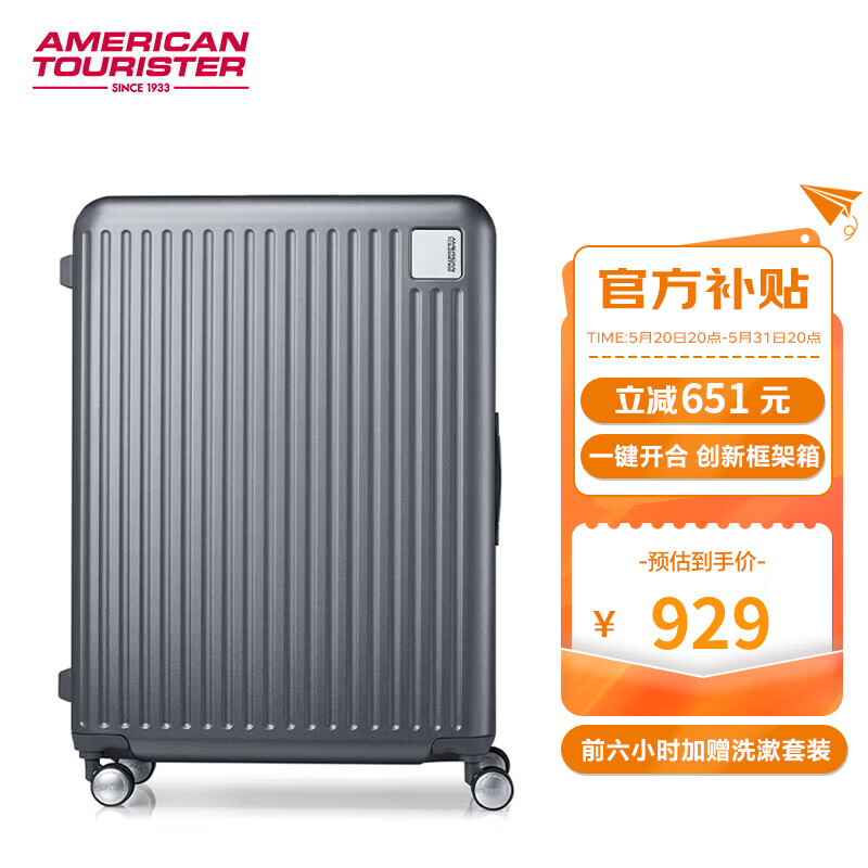 美旅箱包时尚休闲行李箱竖条纹大容量拉杆箱旅行箱QI9灰色24英寸价格:929.00元!
