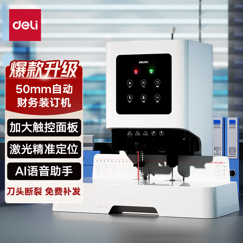 得力50mm会计凭证自动装订机500页财务装订机电动打孔装订机铆管热熔装订机文件打孔器激光定位GB666价格:1299.00元!