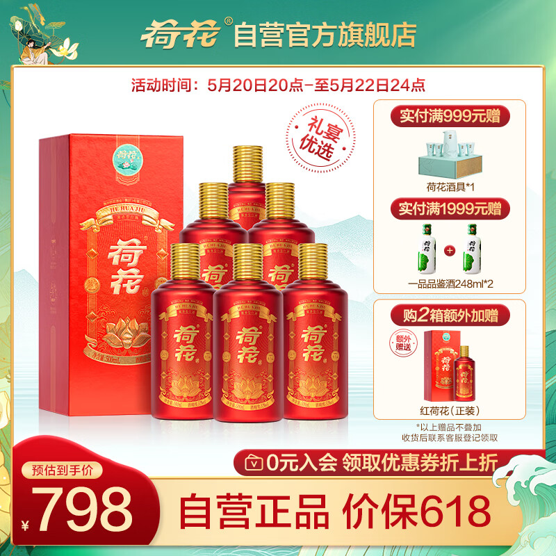 荷花红荷花 酱香型白酒 53度 500ml*6瓶 整箱装【喜宴礼赠 贵州白酒】价格:938.00元!