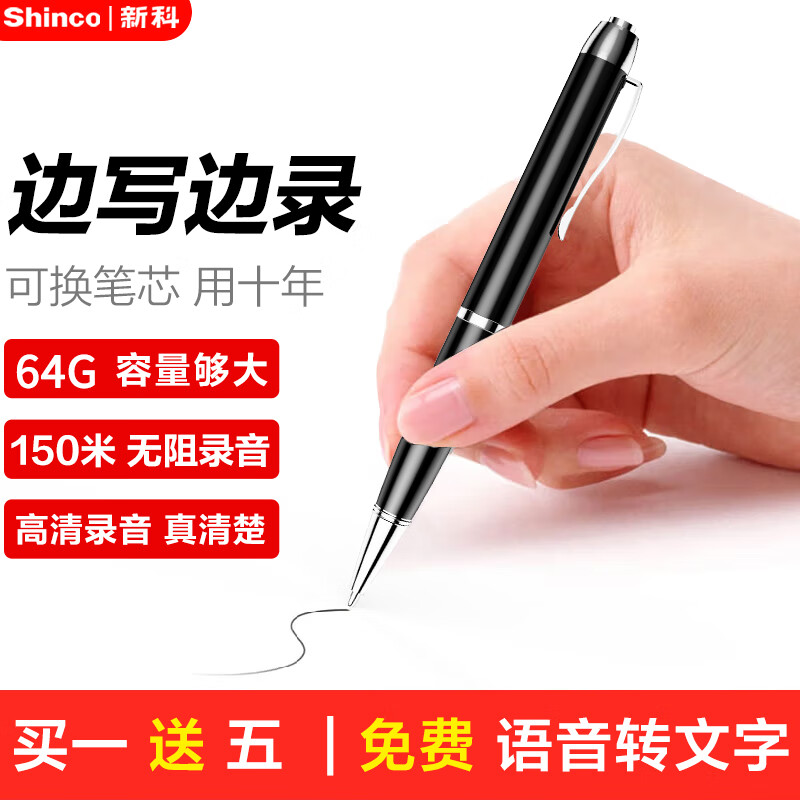 新科(Shinco)录音笔V-05pro 64G专业录音器高清降噪 商务办公会议培训学习录音设备 黑色价格:199.00元!