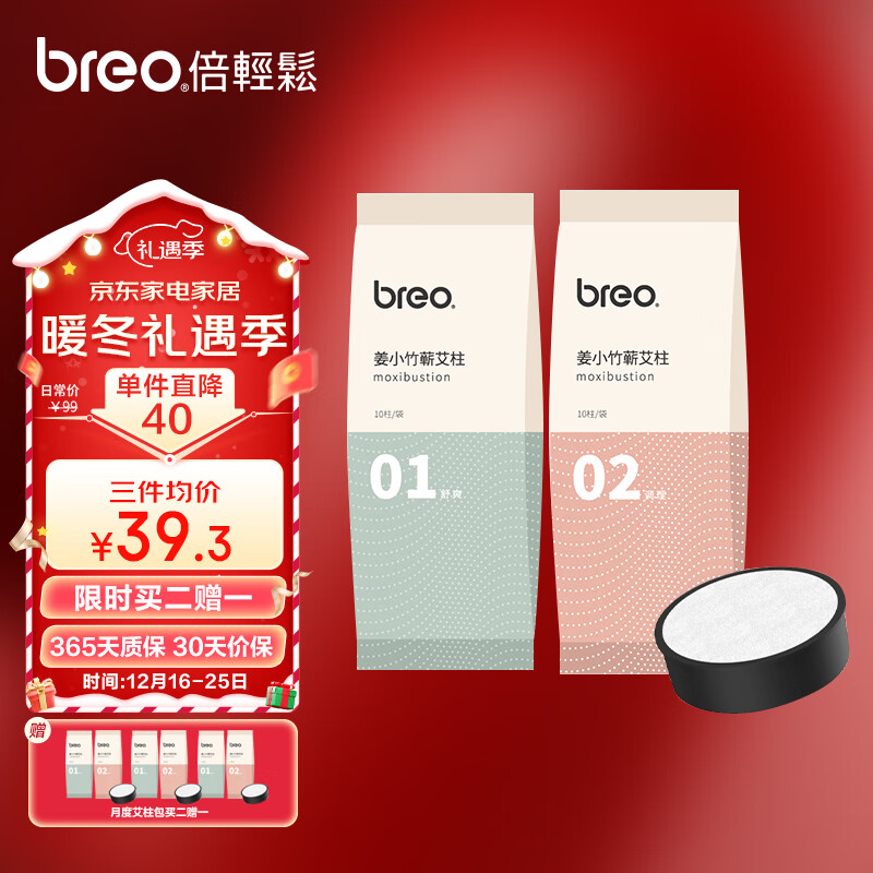 倍轻松(breo)艾灸仪A1艾灸盒月度艾柱包(20条艾柱条+1个滤网)舒爽包+调理包价格:59.00元!