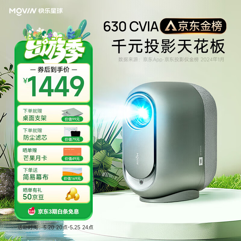 快乐星球 O3 投影仪家用 投影机 智能家庭影院(630CVIA流明 双倍亮度 JBL原装音响 极米系统 3G运存)价格:1549.00元!