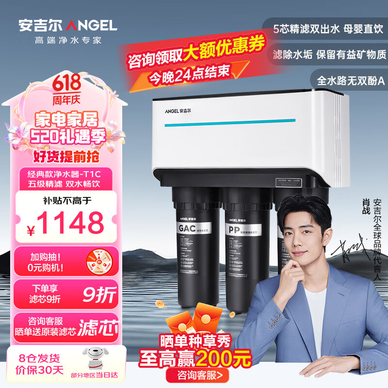 安吉尔 肖战代言 净水器家用T1C 滤除水垢纯水机 五芯五级反渗透精滤双水畅饮纯水机 厨下净水机排名前十 【线下同款】【经典热卖10万+台】价格:1148.00元!