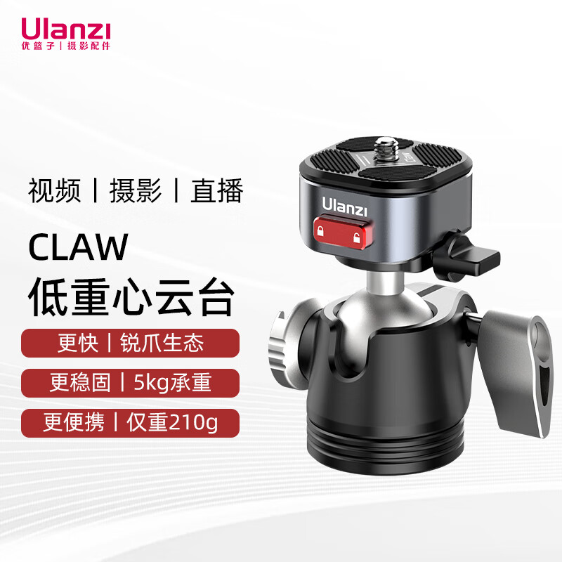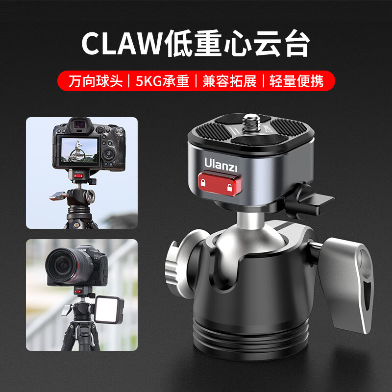 ulanzi优篮子 CLAW 低重心云台360°全景万向阻尼球头支架vlog手机单反相机横竖拍摄影便携拓展脚架配件价格:179.00元!