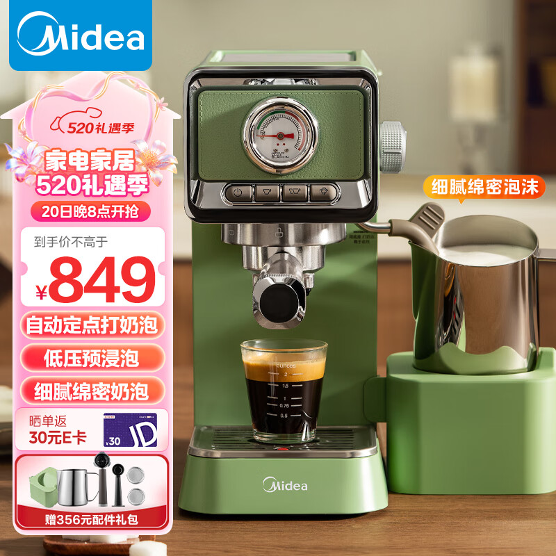 美的(Midea)意式咖啡机1.2L云朵奶泡咖啡机半自动浓缩泵压式一体咖啡机复古咖啡机家用咖啡壶双杯咖啡机E05价格:899.00元!