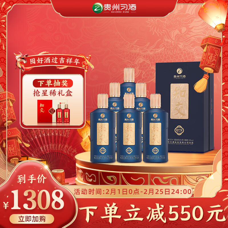 习酒知交知行义 龙年 年货 酱香型白酒 53度 500ml*6 整箱装 过年送礼价格:2389.00元!