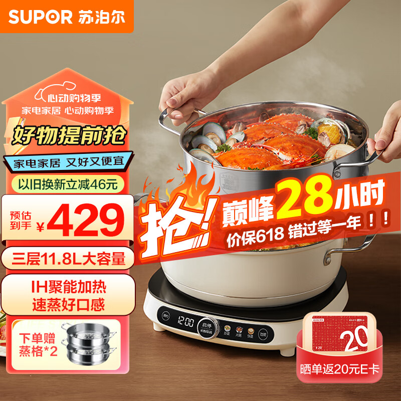 苏泊尔(SUPOR)家用电磁炉 2100W大功率 IH电磁加热 爆炒炒菜 多用途锅 电蒸锅 火锅炉 套装送锅C21-IC803E价格:479.00元!