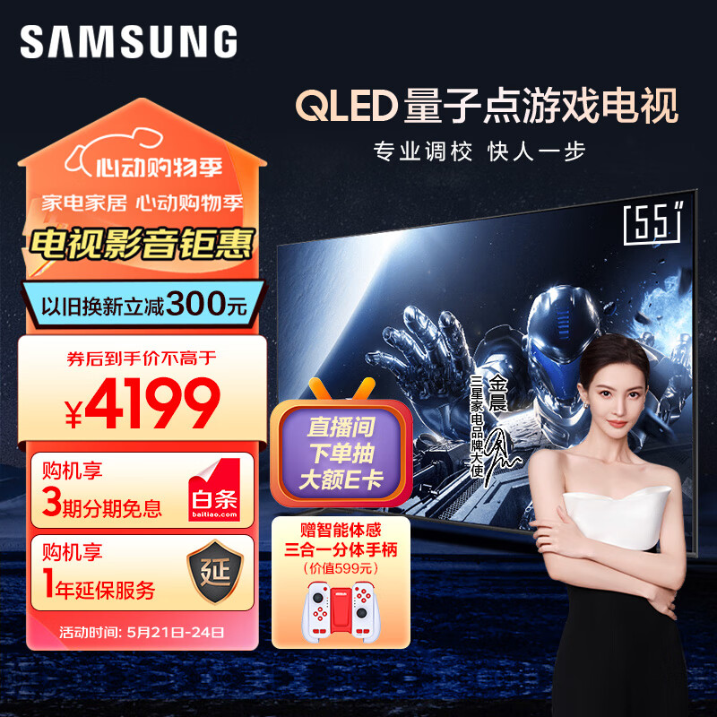 三星(SAMSUNG)55QX3C 55英寸 QLED量子点 专业游戏电视 无开机广告 超薄4K 120Hz HDMI2.1 QA55QX3CAJXXZ价格:4299.00元!