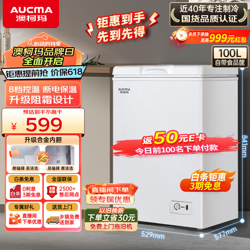 澳柯玛(AUCMA)100升家用低霜小冰柜 商用冷藏柜冷冻柜转换 母乳冰柜小型冰箱冷柜 一级能效 BC/BD-100H 以旧换新价格:694.00元!