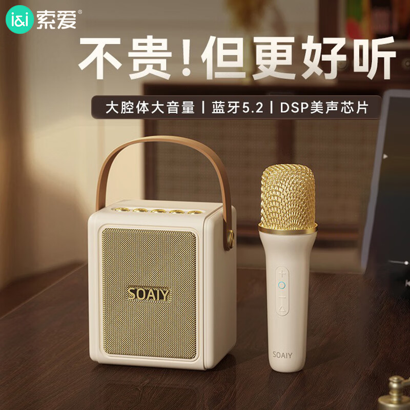索爱(soaiy)SK9唱歌话筒音响一体机家庭ktv儿童k歌手机蓝牙家用户外迷你卡拉OK套装无线麦克风白色单话筒价格:98.30元!