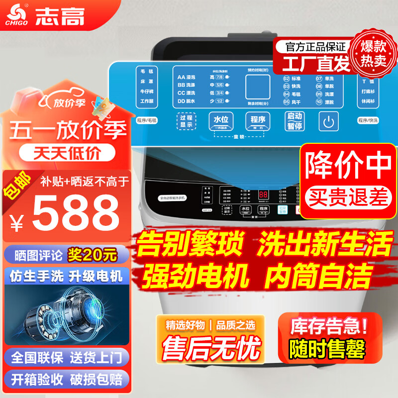志高(CHIGO)洗衣机15公斤大容量家用商用全自动波轮洗衣机智能洗脱一体机 蓝光洗护强劲电机仿生手洗 灰色价格:618.00元!