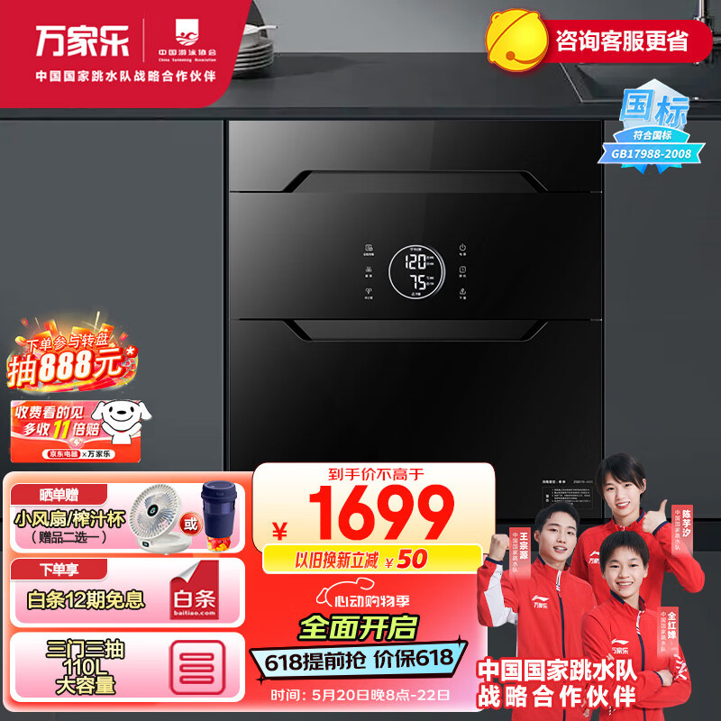 万家乐消毒柜110L 嵌入式二三门三抽母婴消毒柜 臭氧紫外线低温消毒中温烘干预约消毒碗柜ZQD110-AD5价格:1699.00元!