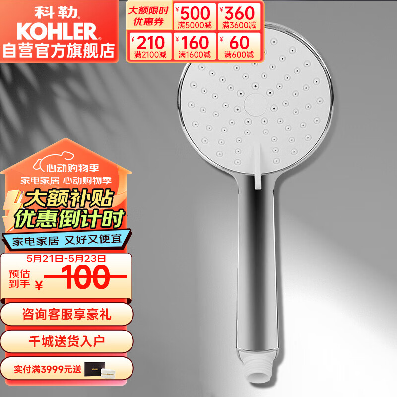 科勒(KOHLER) 淋浴花洒喷头 手持花洒多功能莲蓬头 K-30251T-CP价格:117.00元!