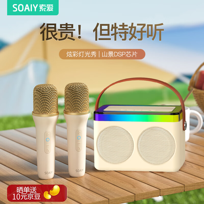 索爱(soaiy)SK7家庭KTV音响手机电视K歌点歌机话筒蓝牙音箱一体机儿童家用户外麦克风套装 双麦版 油彩白价格:228.00元!