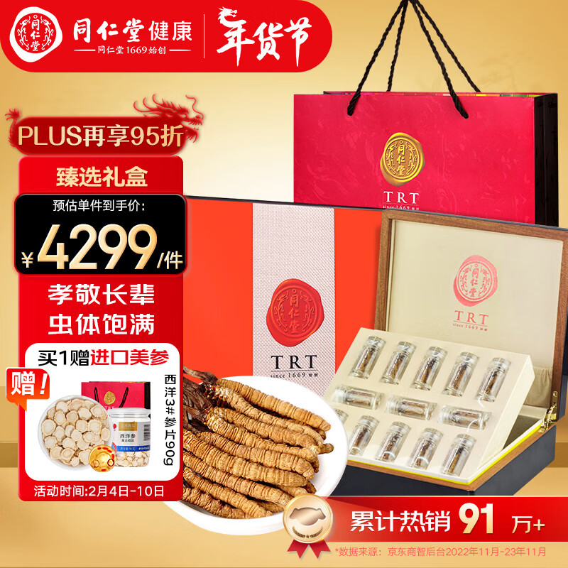 北京同仁堂【年货礼品】冬虫夏草 -50/13g 虫草礼盒 虫体饱满 洁净度高 可泡酒磨粉 送礼 滋补品L价格:4299.00元!