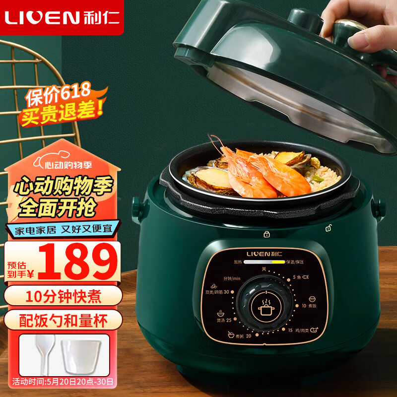 利仁(Liven)电锅家用高压锅小型 多功能迷你电高压锅锅 开盖电火锅1.8升 高压锅多用锅1-2人3人G-51价格:189.00元!