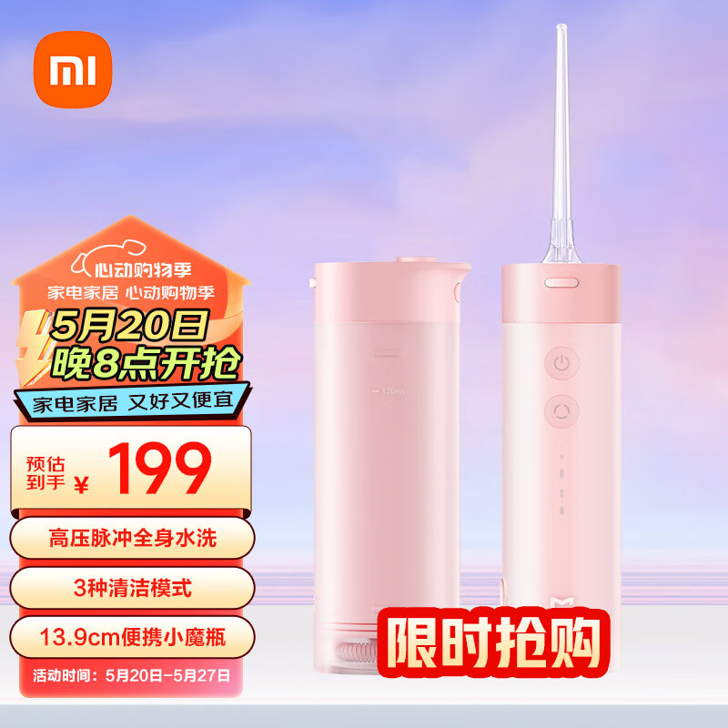米家 小米便携式冲牙器洗牙器清洁口腔 高压脉冲全身水洗 60天长续航 樱花粉 礼物推荐价格:199.00元!