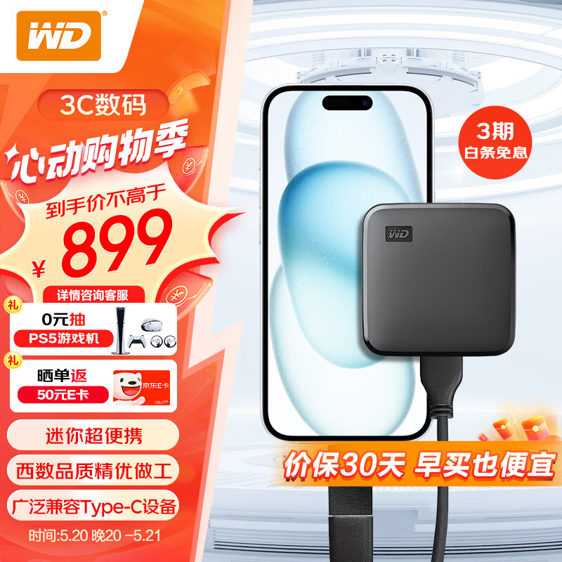 西部数据(WD) 2TB 移动固态硬盘(PSSD)Elements SE新元素 SSD type-c接口 手机直连笔记本电脑外接价格:899.00元!