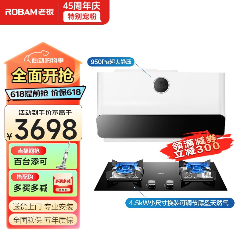 老板(Robam)抽油烟机A3S白色超薄近吸烟机80cm小尺寸23风量家用变频灶具燃气灶烟灶套装22A3S+30B6D(天然气)价格:3998.00元!