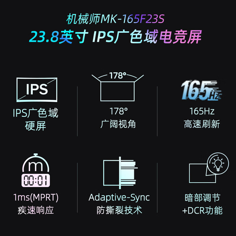机械师 23.8英寸 IPS 游戏显示屏显示器 165Hz高刷新 1ms响应 微边框 99%sRGB广色域 电竞小钢炮 MK-165F23s价格:1199.00元!