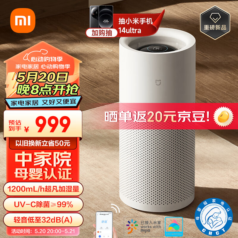 米家小米无雾加湿器3(1200) 卧室大容量家用办公室婴儿孕妇 1200ml/h快速空气加湿冷蒸发式 母婴认证价格:999.00元!