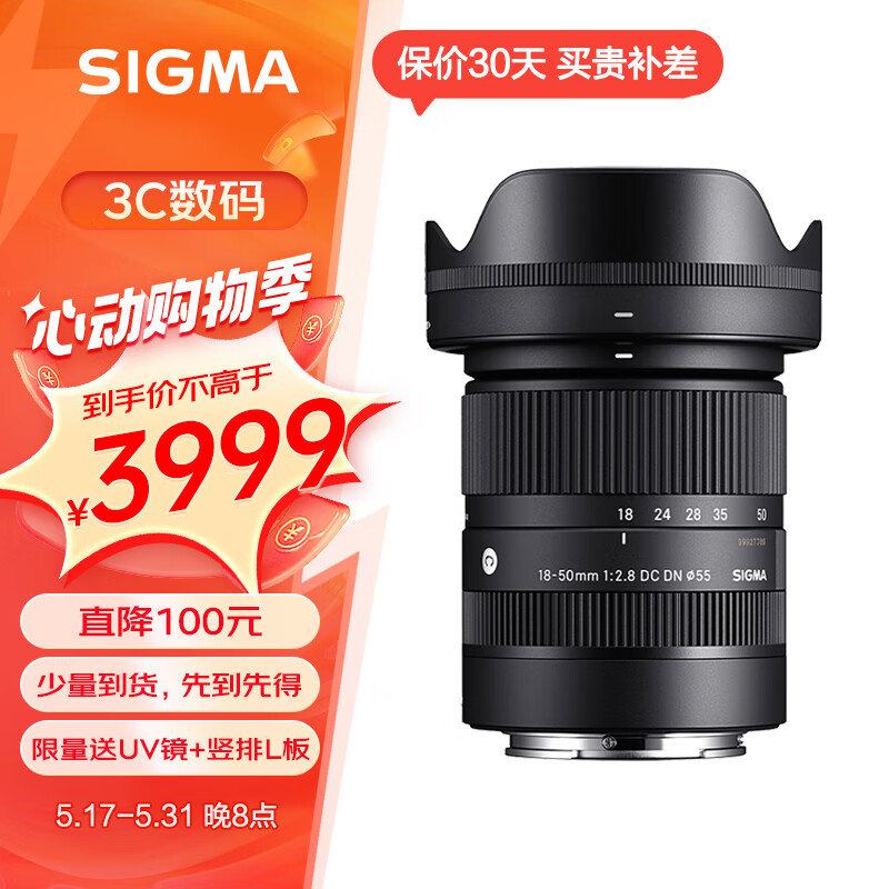 适马(SIGMA)18-50mm F2.8 DC DN|Contemporary 半画幅微单 1850恒定大光圈标准变焦镜头 (富士X卡口)价格:3999.00元!