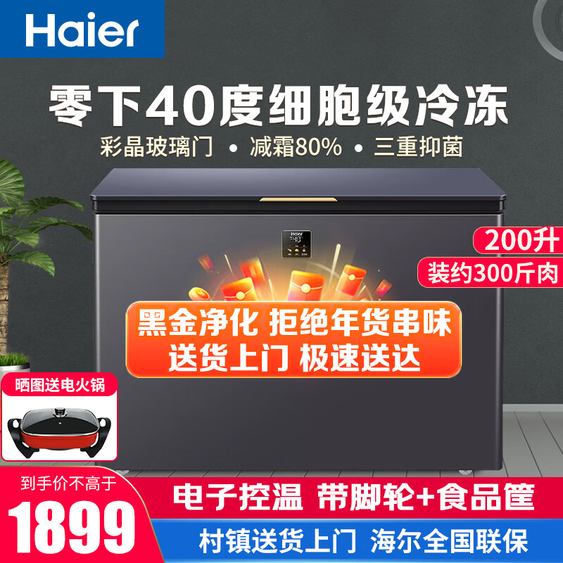 海尔(Haier)冰柜200升零下40度超低温电子控温PCM钢板内胆一级能效家用商用减霜冷柜价格:1899.00元!