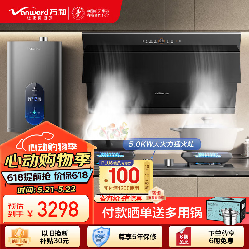 万和(Vanward)烟灶热三件套 24风量直流变频抽油烟机燃气灶具热水器套装 WJ920+C5L90S+ME5D16(天然气)价格:3598.00元!