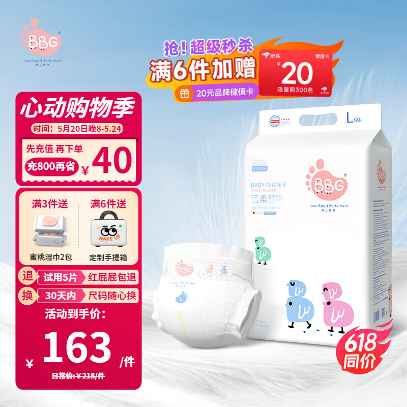 BBG蓝芯羽柔奢护纸尿裤新生儿NB码90片(≤4kg)婴儿尿不湿鲸吸瞬干价格:198.00元!