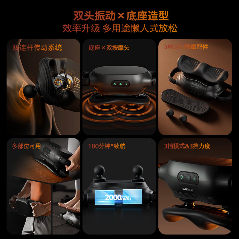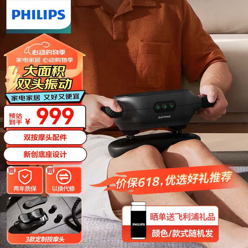 飞利浦(PHILIPS)双头筋膜枪全身大面积振动放松按摩枪 运动健身专业级肌肉放松颈肌膜枪送礼礼品高端实用礼物5401G价格:999.00元!