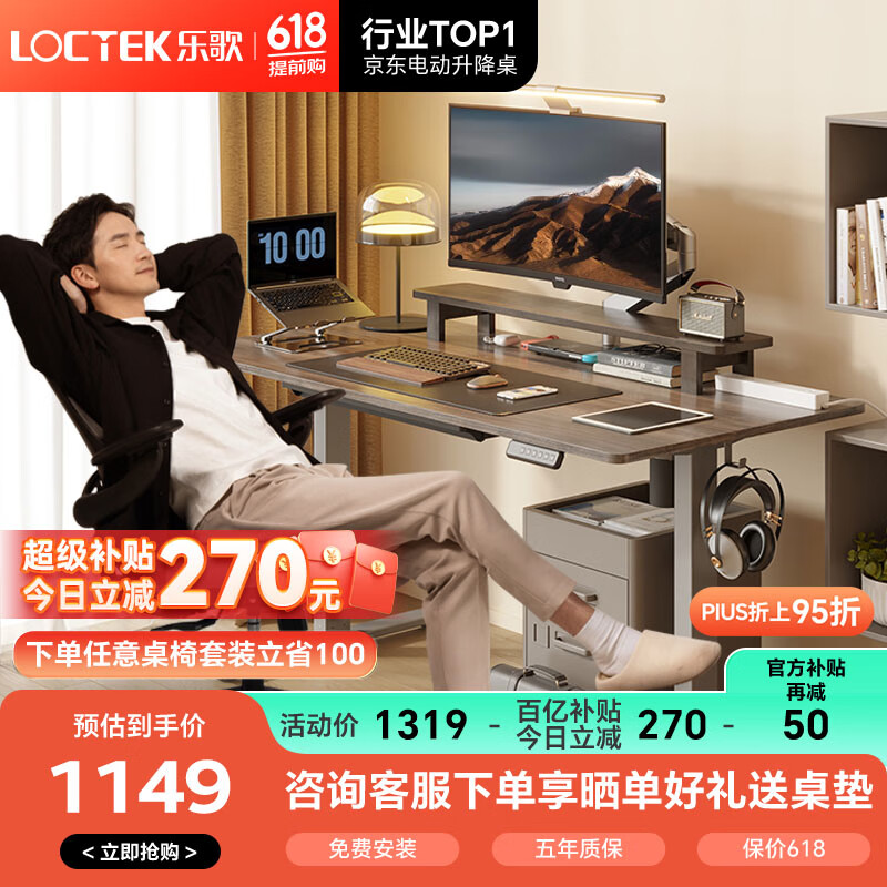 乐歌电动升降电脑桌电竞升降书桌办公学习桌子E2灰胡桃木色价格:1149.00元!