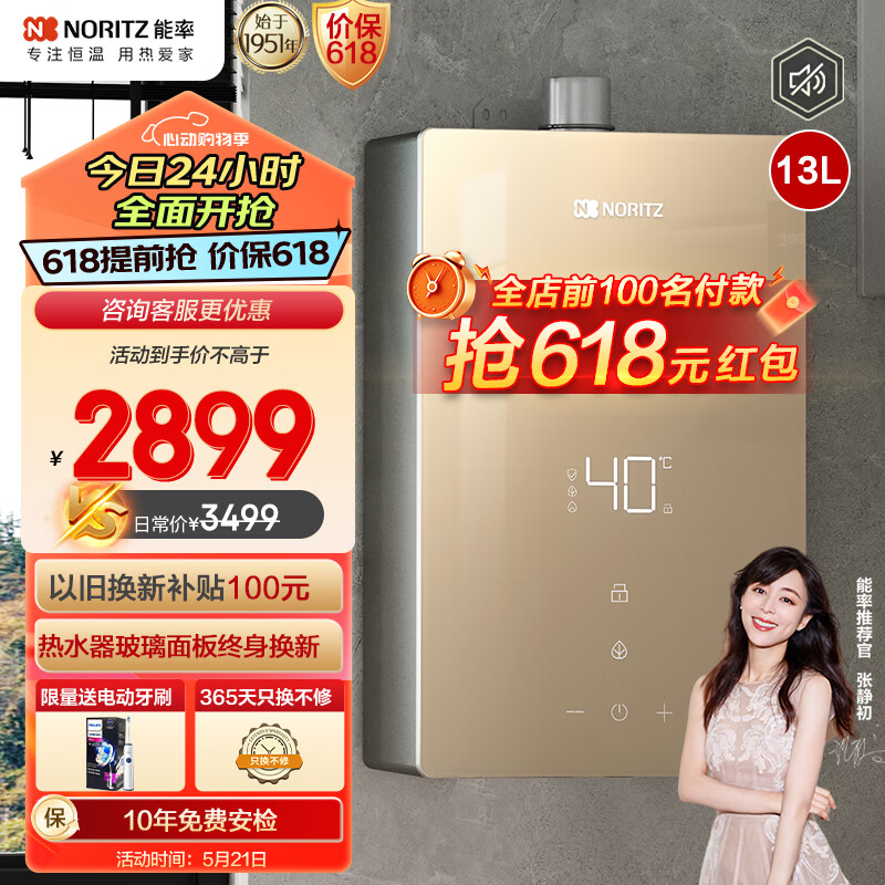 能率(NORITZ)燃气热水器13升 幻彩系列 屏玻璃面板 卧室级静音 恒温 天然气GQ-13EP5FEX(JSQ25-EP5)防冻价格:3199.00元!