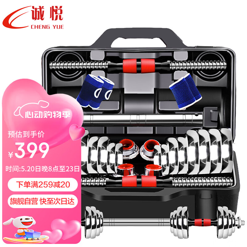 诚悦电镀哑铃杠铃30公斤男女士运动健身器材可调节拆卸组合套装CY-160价格:419.00元!