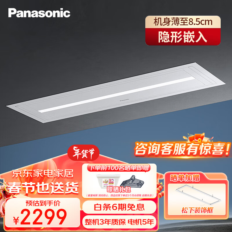 松下(Panasonic)电动智能超薄嵌入式隐形藏晾衣架自动升降遥控LED照明晒衣杆机白价格:2299.00元!