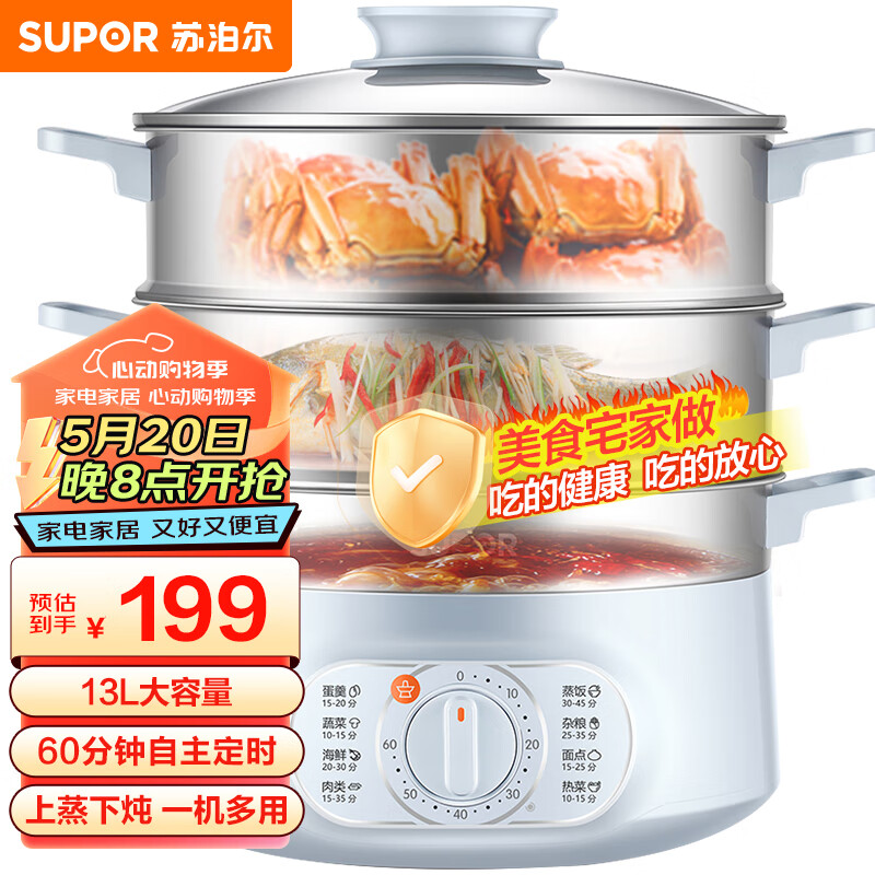 苏泊尔 SUPOR多用途锅电蒸锅多功能家用电火锅电煮锅电热锅三层13L大容量 可定时 ZN28YK815价格:199.00元!