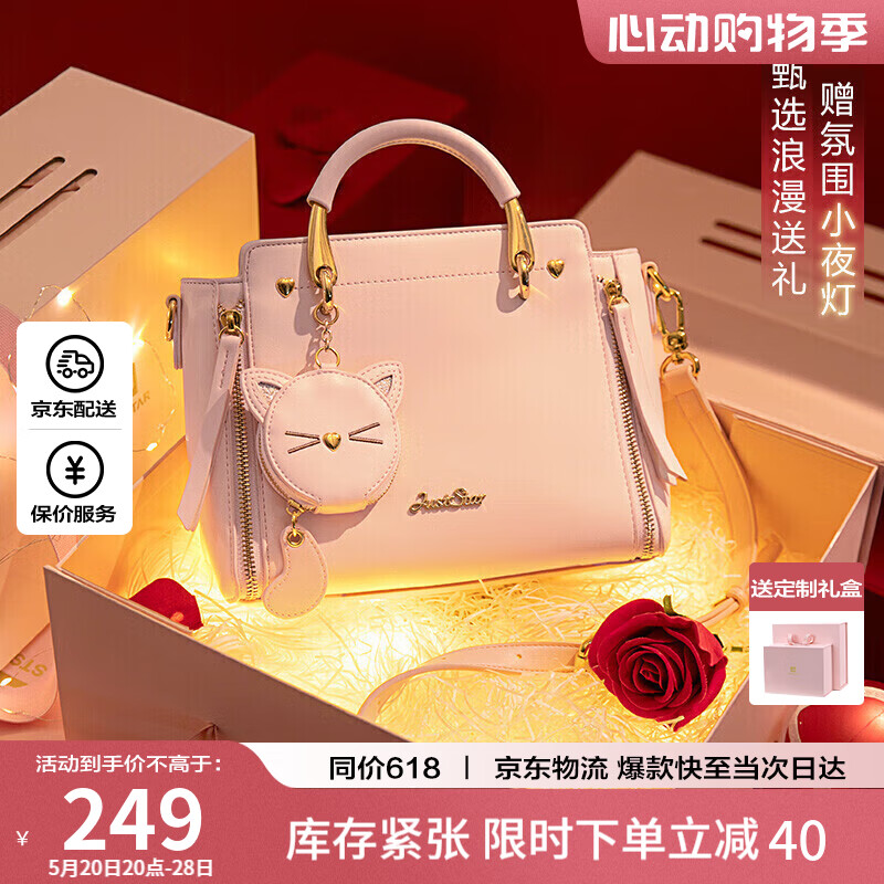 JUST STAR欧时纳包包女包2024新轻奢时尚单肩斜挎包大容量小众百搭高级感手提包女士包包实用走心生日礼物520情人节礼物送女友老婆送女神 043樱花粉粉色礼盒装价格:289.00元!