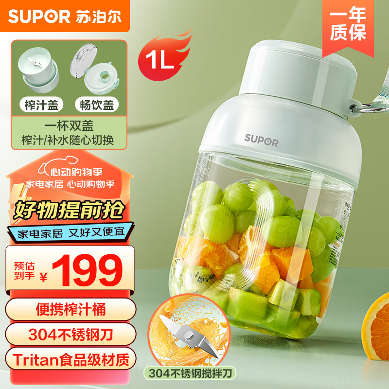苏泊尔(SUPOR)榨汁杯 榨汁机便携 无线充电果汁机 户外随行杯果汁杯 小型榨汁桶 JC500价格:199.00元!