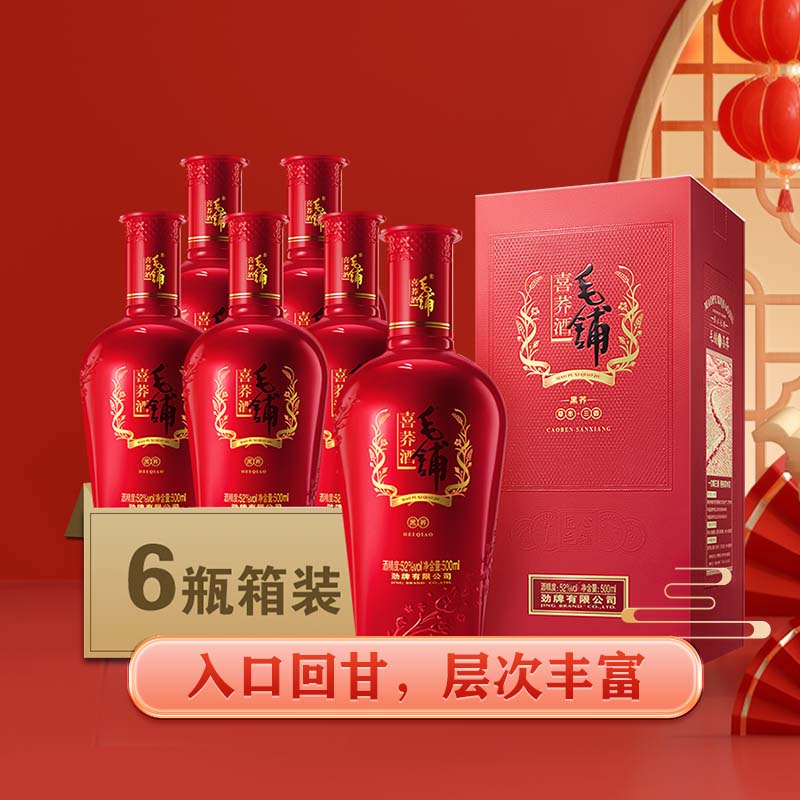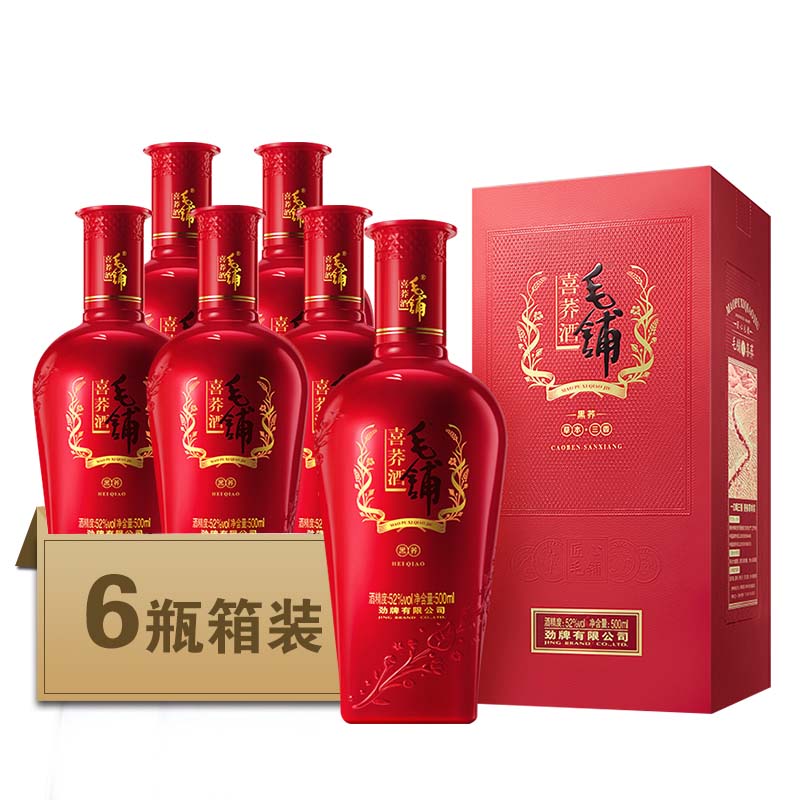劲牌 毛铺苦荞酒 喜荞酒黑荞 52度 500ml*6瓶 整箱装价格:908.00元!