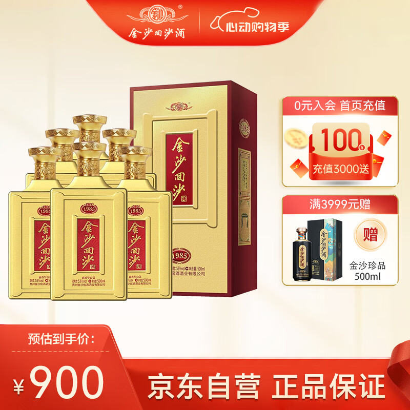金沙回沙酒 纪年酒1985 酱香型白酒 53度 500ml*6瓶 整箱装 纯粮食酒价格:930.00元!