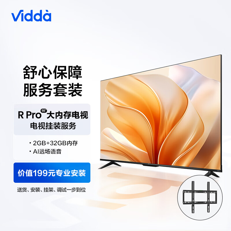 Vidda R55 Pro 海信 55英寸 4K超清 2+32G大内存电视+送装一体服务套装 送货 安装 挂架 调试一步到位价格:1679.00元!