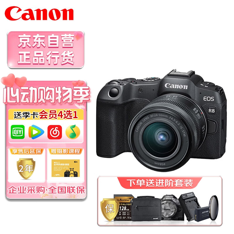 佳能(Canon)EOS R8 RF 24-50 STM镜头套机 扫街拍摄套装价格:11999.00元!