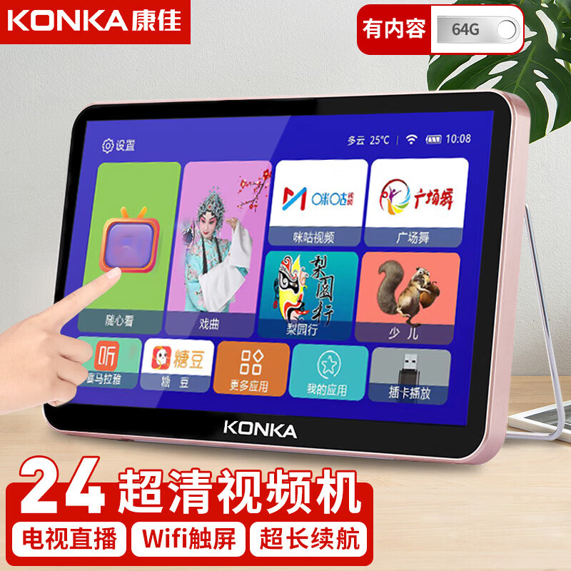 康佳(KONKA)V221S老人电视机WiFi唱戏机老年人看戏听戏机广场舞视频机音响带显示屏收音机移动网络触屏小电视U价格:574.00元!