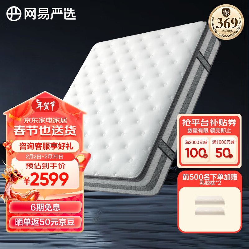 网易严选AB面弹簧床垫2米*2米 进口乳胶床垫 旗舰款 抑菌防螨 独袋弹簧价格:2999.00元!