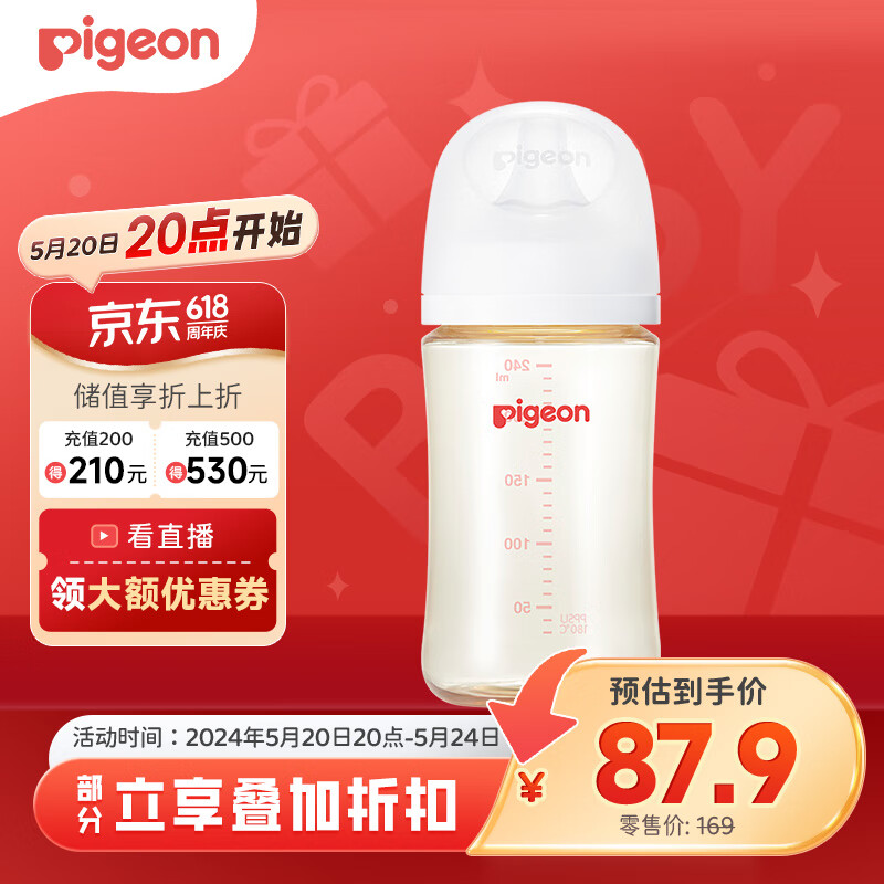 贝亲(Pigeon)自然实感第3代 婴儿PPSU奶瓶 宽口径 240ml AA192 L号 6个月以上价格:97.60元!