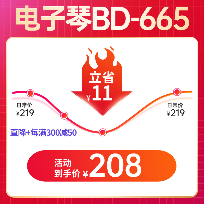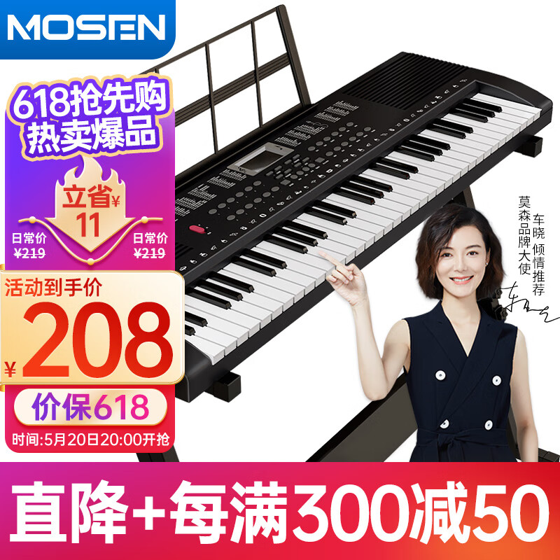 莫森(MOSEN)BD-665电子琴 61键双供电式 初学儿童教学多功能入门琴 Z架型价格:208.00元!