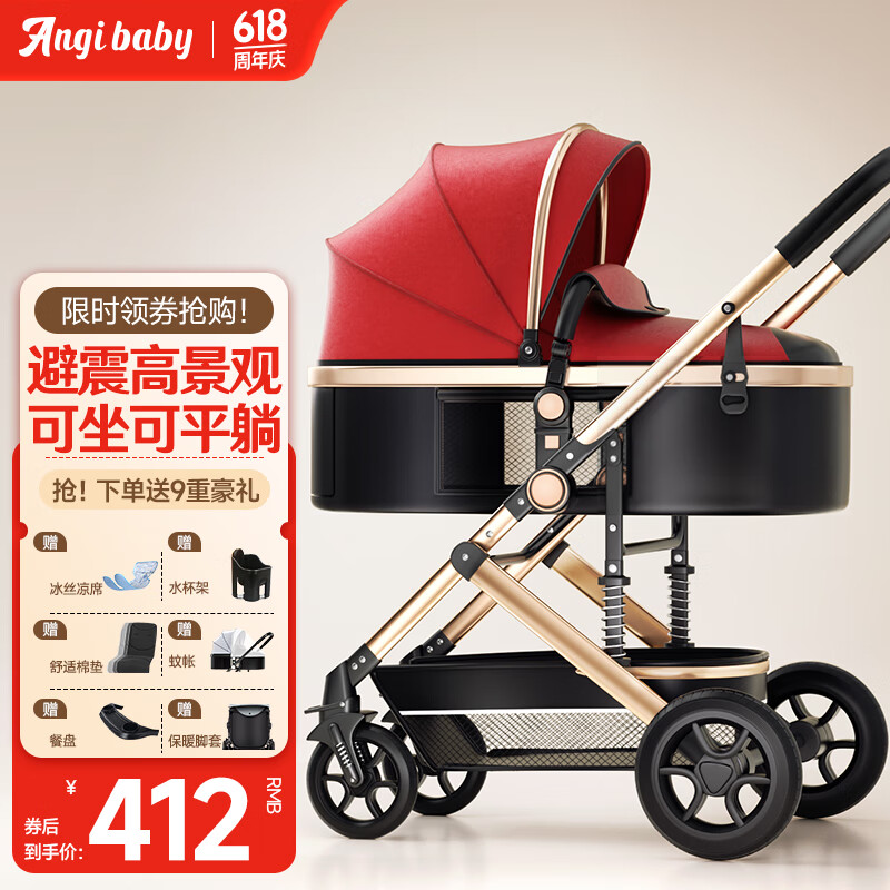ANGI BABY婴儿推车可坐可躺可折叠婴儿车高景观双向减震手推车价格:469.00元!