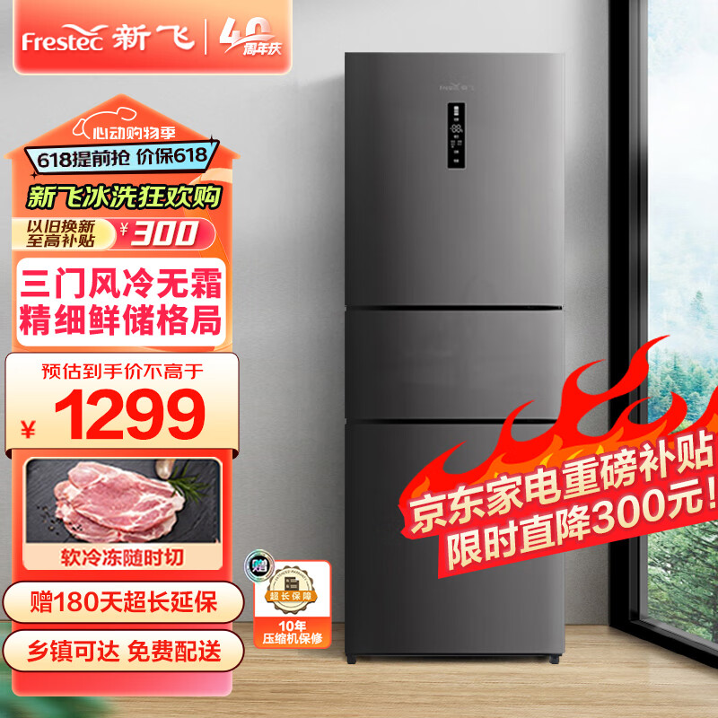 新飞(Frestec)260升变频一级能效三门冰箱中门宽幅变温家用无霜智能变温 节能低音BCD-260WK3AT价格:1299.00元!
