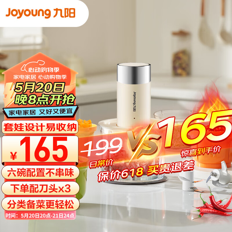九阳(Joyoung)绞肉机 家用套娃式六碗三刀佐料机 多功能辅食机电动料理机捣蒜器 搅拌机绞馅机辅食机价格:165.00元!
