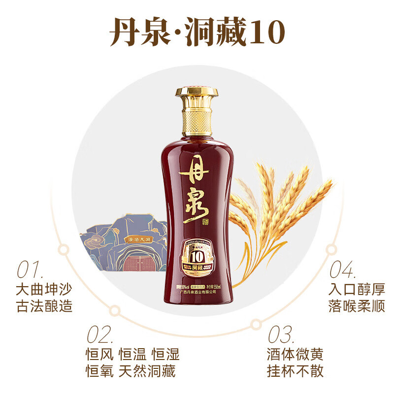 丹泉酒 洞藏10 酱香型白酒 50度 558ml 加量单瓶装 纯粮酿造 送礼白酒价格:200.00元!